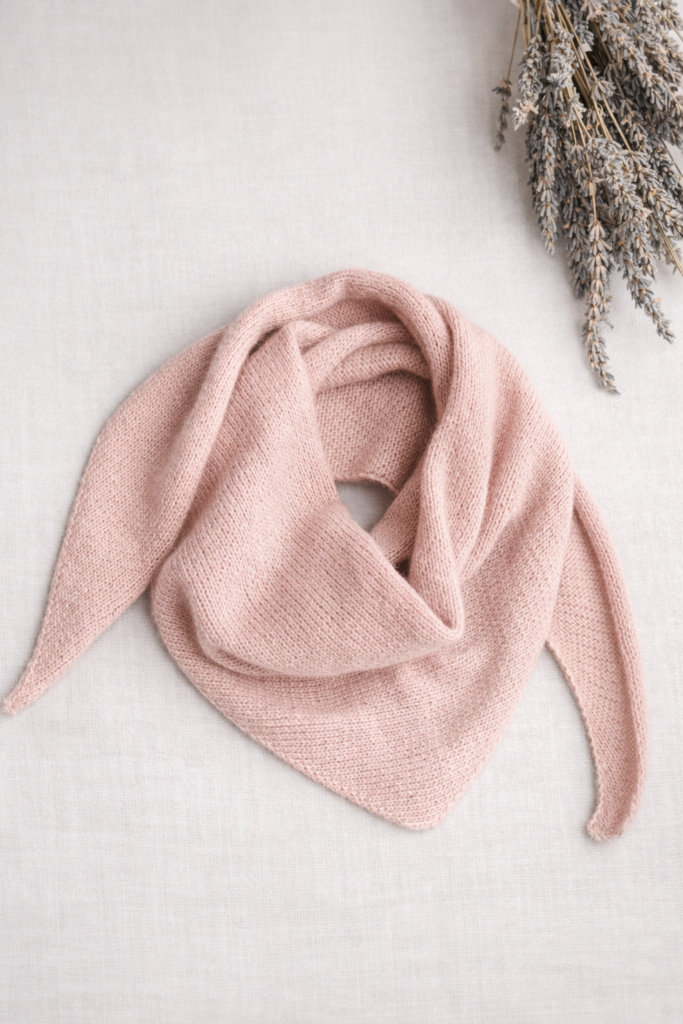 Ein schlichtes, kleines Dreieckstuch (Baktus), das von Spitze zu Spitze in Reihen gestrickt wird. Perfekt als leichtes Accessoire für Frühling und Herbst – und auch ideal für Anfänger geeignet.