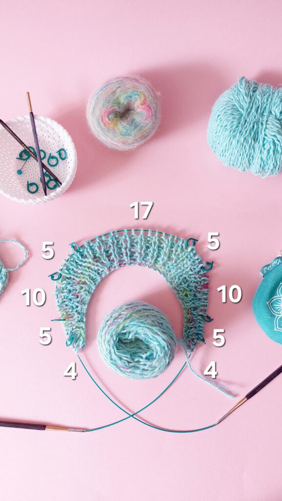 Wechsle anschließend zu Nadel 6,0 mm und beginne mit den Raglanzunahmen.