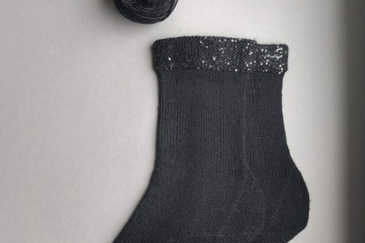 4-fach-Sockengarn-Dichte mit 2,0-mm Nadeln. Die Passform wurde für Größe EU 38–39 getestet.